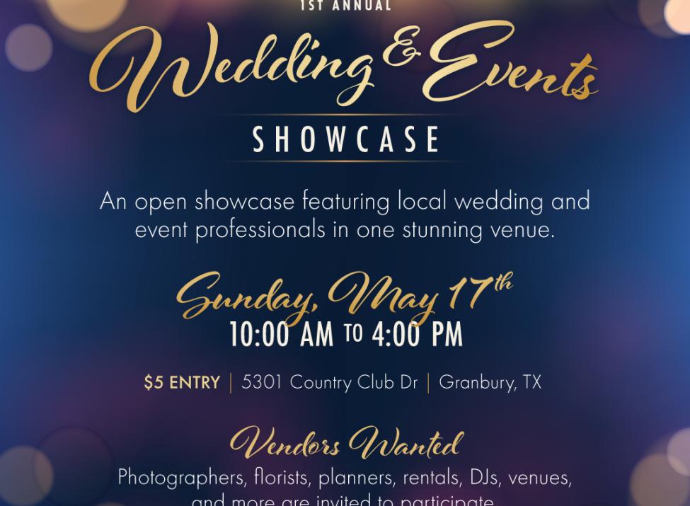 Join us for a community-wide Wedding & Events Showcase bringing together local venues, caterers, and event professionals from across the Granbury area. Whether you're planning an intimate gathering or a large celebration, this event gives you the opportunity to meet a variety of trusted professionals — all in one place.