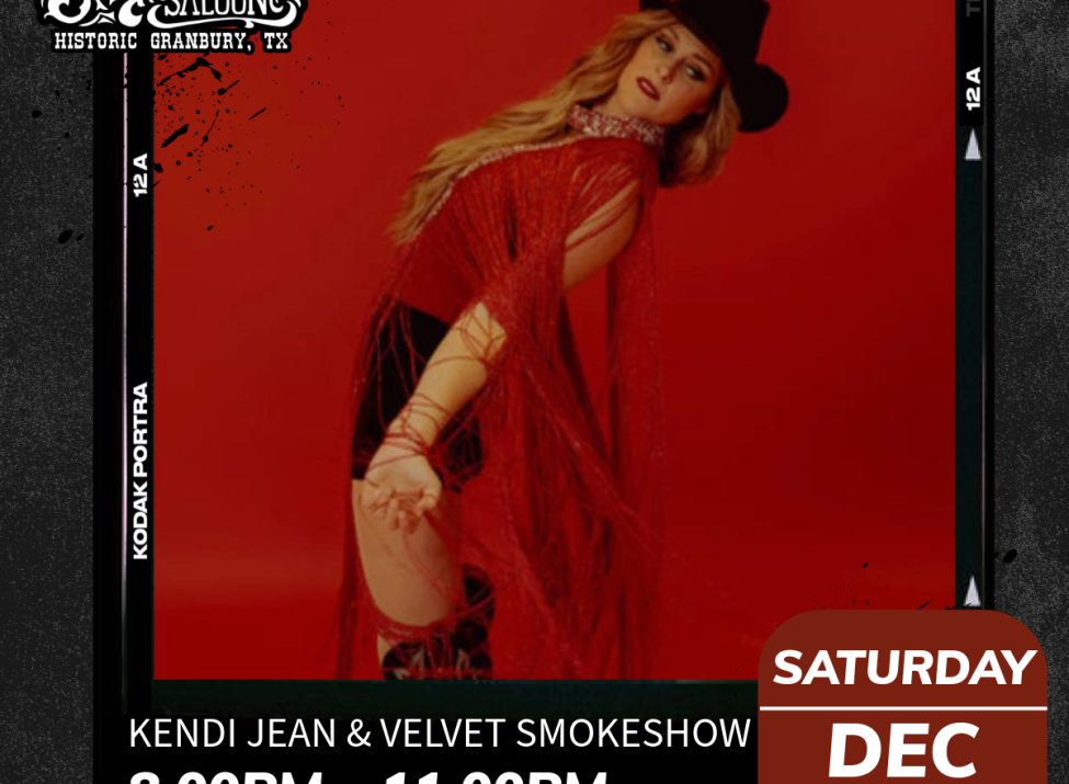Join us for a jaw dropping show with Live Music by Kendi Jean & Velvet Smokeshow, Live at Silver Saddle Saloon on The Granbury Square, Sat 12/6, 8-11pm! Free show and open til Midnight! All ages welcome!