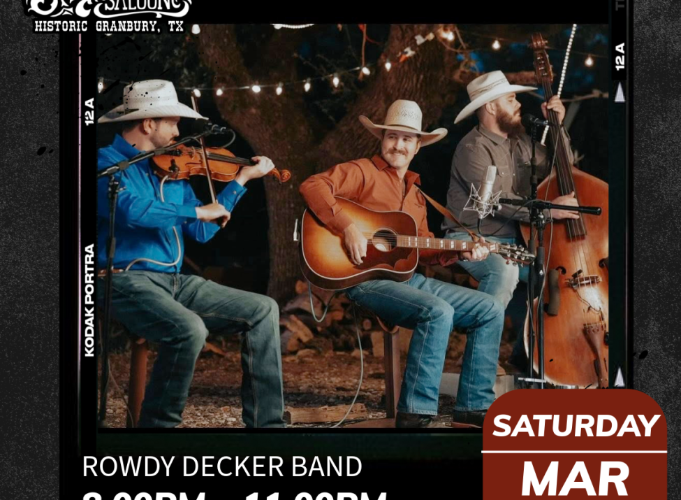 Join us for a jaw dropping show with Live Music by Rowdy Decker Band, Live at Silver Saddle Saloon on The Granbury Square, Sat 2/7, 8-11pm, during our 7 Year Anniversary Party! Free show and open til Midnight! All ages welcome!