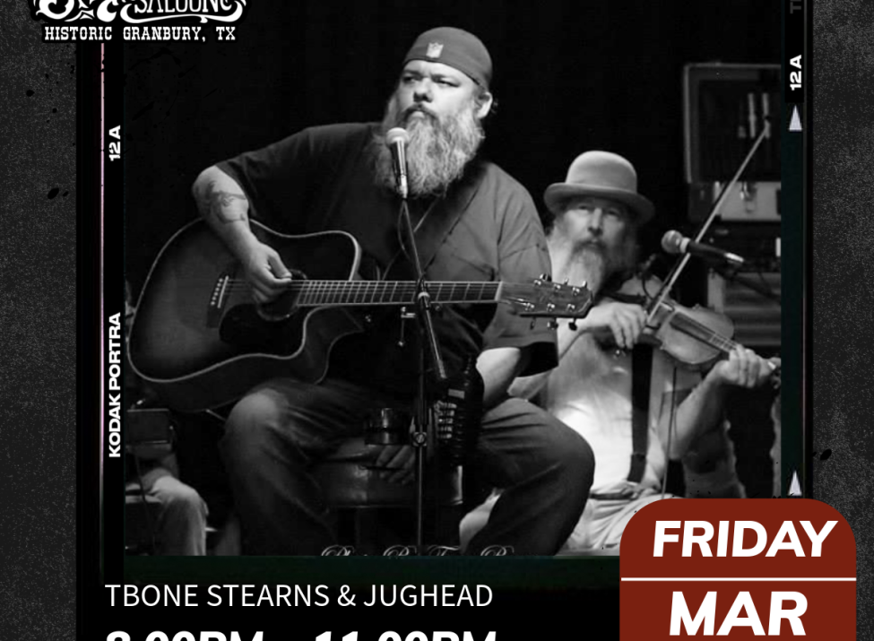 Join us for a night of Live Music with TX Music Artist, Tone Stearns & Jughead, at Silver Saddle Saloon on The Granbury Square. Fri 3/6 , 8-11pm during our & Year Anniversary Celebration! Free show and open til Midnight! All ages welcome!